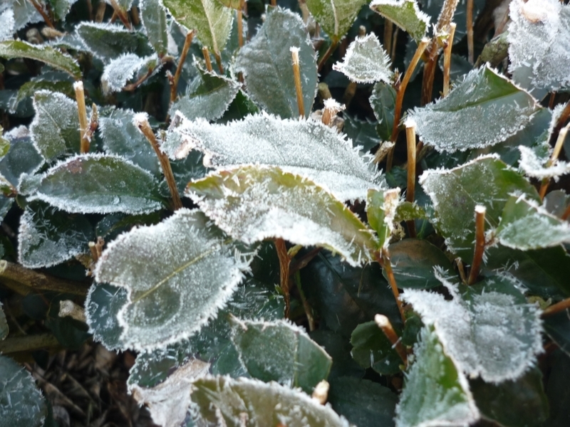 寒さに強い状態となっている、休眠中のお茶の樹に霜が降りても、お茶の樹はへっちゃらです(^^)/